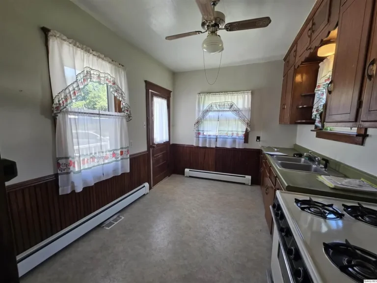 This cute 2 bed, 1 bath home has been well maintained and is waiting for a new owner! All windows have been replaced as well as exterior storm doors. Bathroom updated in 2024, hardwood floors under carpet and beautiful woodwork throughout. Both front and back concrete sidewalks and steps were replaced with new vinyl porch railing. New roof in 2021. Oversized insulated 2 car garage for extra storage.